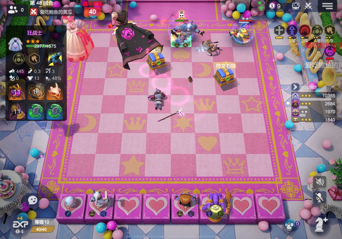 (上图可以看到我在21血的时候1L还有90血,而且是连胜的状态,不过在我10人口阵容成型后就被我一路反超,不过好几次都是靠大哥1V5翻盘的!!!)