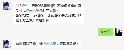 115级的世界BOSS是谁呢?不知道答案的同学可以点击这里前往查看哦~