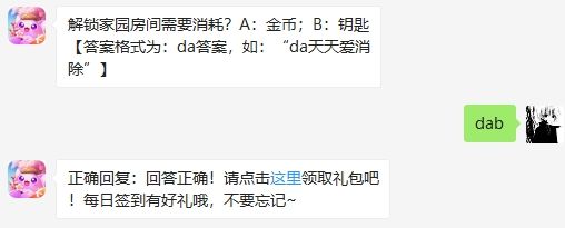 解锁家园房间需要消耗?A:金币;B:钥匙