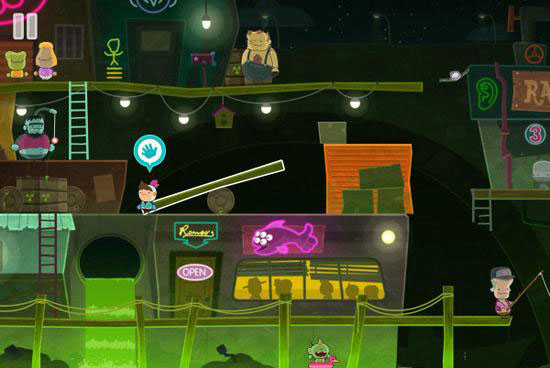 随后控制主角利用右侧的箱子爬到上方将箱子推下,然后将箱子压住跷跷板就能通过楼梯爬到上层。到达上层后,点击最右侧的机器人零件便会触发一段剧情。(好!!主角摔死了,全剧终。)