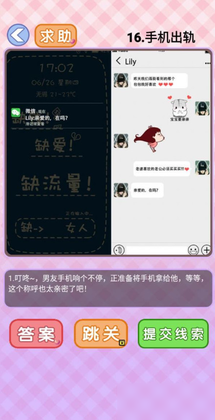 你有问题第16关怎么通关?你有问题这款游戏的趣味性还是比较高的,可以让各位有对象的小伙伴们分辨出自己的男女关系,你有问题第16关怎么通关?我们一起来看看做你有问题第16关通关攻略。