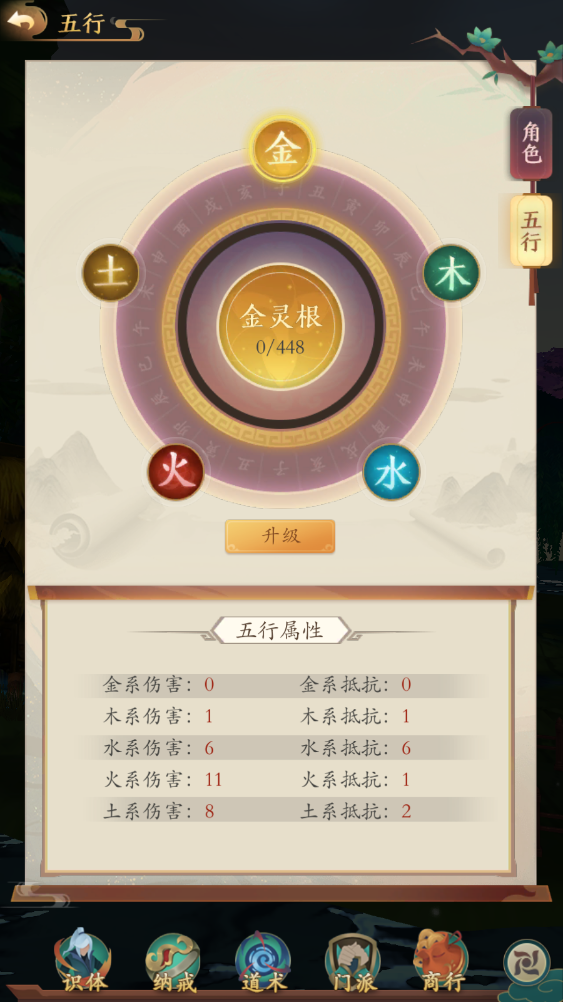 1) 五行分为:金、木、水、火、土;五行灵根影响对应五行的属性伤害与五行抵抗