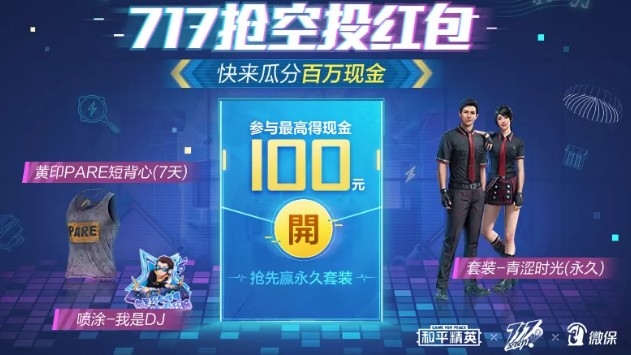 7月23日-8月5日,进入微保小程序“717抢空投红包”页面:免费领超值游戏道具、保障大礼包、还能瓜分百万现金红包。