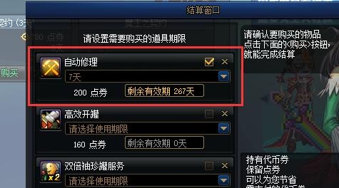 自动修理是DNF中的一款必需品,就像我们生活中的“衣食住行”一样,不论对于谁,都是不可或缺的,所以买“自动修理”一定不会亏。