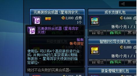 欢乐秘宝的活动时间是7.30~8.13,7.31、8.3、8.6都能获得一笔代币券,如果不出意外的话,欢乐代币券将会在9月份金秋礼包上架之前删除,所以我们能买7、8、9三个月的完美合成器,一波三件天空难道不香吗?