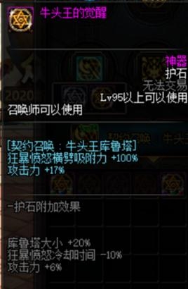 牛头王同样是召唤师的主力输出技能之一,护石增加了牛头王的吸附能力和攻击力,加强简单粗暴,为召唤师的首选护石。