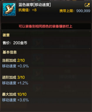 徽章分为1-10级,通过升级的方式进行升级,一个徽章升到10级为满属性,满属性的徽章和最低属性的徽章差距极大大。