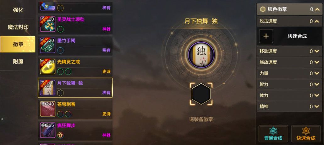 银色徽章分为两大类,一类是攻击、移动、施放速度,一类是力量、智力、体力、精神。