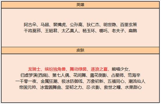 打开后可随机获得以下奖励之一:杨戬、沈梦溪、伽罗、英雄体验卡(3天)、双倍金币卡:1日、双倍经验卡:1日、188/138/108铭文碎片。