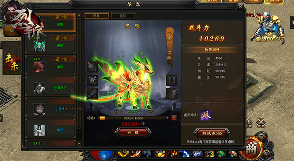 当玩家角色达到一定等级时,即可在游戏中开启战宠系统。在37《烈斩》战宠系统中,每一个冒险者都可以召唤出战宠,来帮助自己进行战斗。战宠属于外观显现且跟随状态,目前战宠共分为5阶十星。冒险者消耗绑定元宝可对战宠进行升星进阶操作,战宠每一阶星级达到10星,将自动进阶为更高品质的战宠。同时战宠形态外观也将发生更为华丽的变化,属性同步获得提升。而除了战宠自身战斗属性外,战宠还将赋予角色生命、攻击、物理与魔法防御属性。