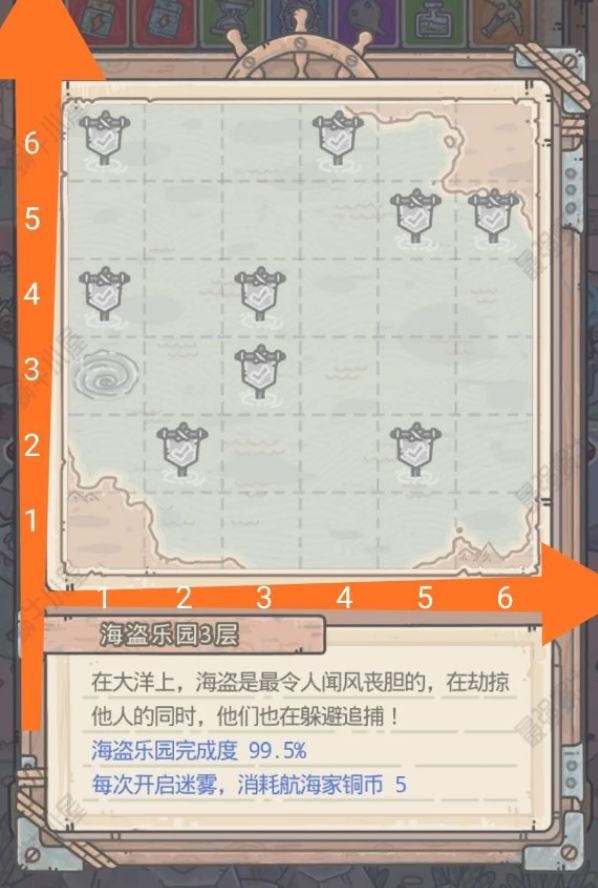 漩涡(3,6)在使用号角后,可以从此处进入下一层(会消耗固定数量水手)。