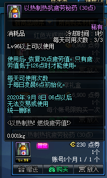 每天最多可以使用3个以热制热抗疲劳秘药。