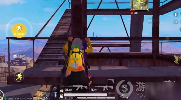 还有其他的制高点,就是上图这个建筑,在大矿山的山上一共有四座,其中西侧的两个可以通过北面的高地利用抓爬机制上去,而东侧的那两个则因为地形原因上不去。值得注意的是,这些建筑中心是空心的,中间底层有一个半封闭式的方形区域,千万要小心,不要掉下去。