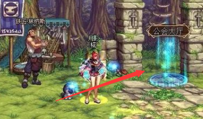 5、进入有就会出现如图的界面,继续往右走就是公会地下城了。