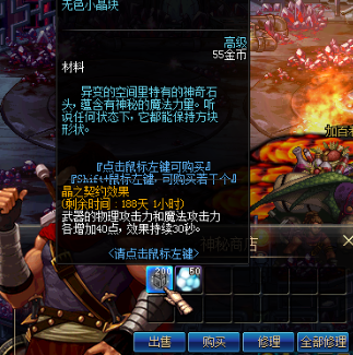 1、分解装备可以获得随机数量的无色小晶块。