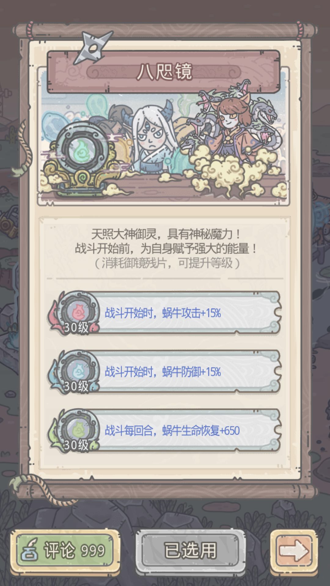 强化苇原之国守印可以提升战斗开始时,蜗牛防御百分比。