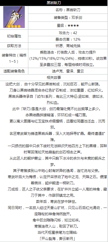 原神黑岩斩刀获取方法与属性是什么?原神是由米哈游自研的一款全新开放世界冒险游戏,在七种元素交汇的世界——「提瓦特」大陆,你将自由旅行、结识同伴、寻找掌控尘世元素的七神,下面就一起来看看原神手游黑岩斩刀获取方法与属性介绍,希望能帮到大家!