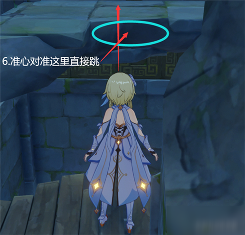 中间石塔:60秒爬到塔顶方式,必须用到【岩主】的垫脚石,需要去岩神像那里共鸣才行。石塔跳点位置和爬塔步骤如下图所示: