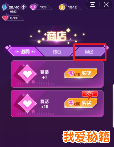 进入商店界面后,我们点击顶部的角色的选项切换。