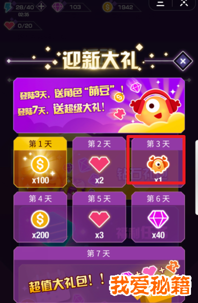 确定后,就可以看到怎么获得该角色,比如这个萌豆的角色,可以通过3天的签到来获得。