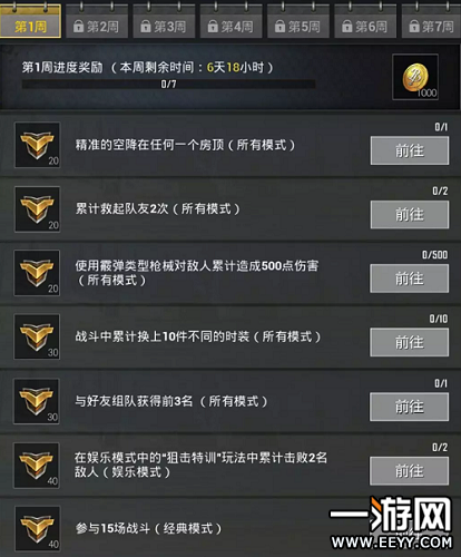 绝地求生刺激战场S6赛季第1周任务攻略