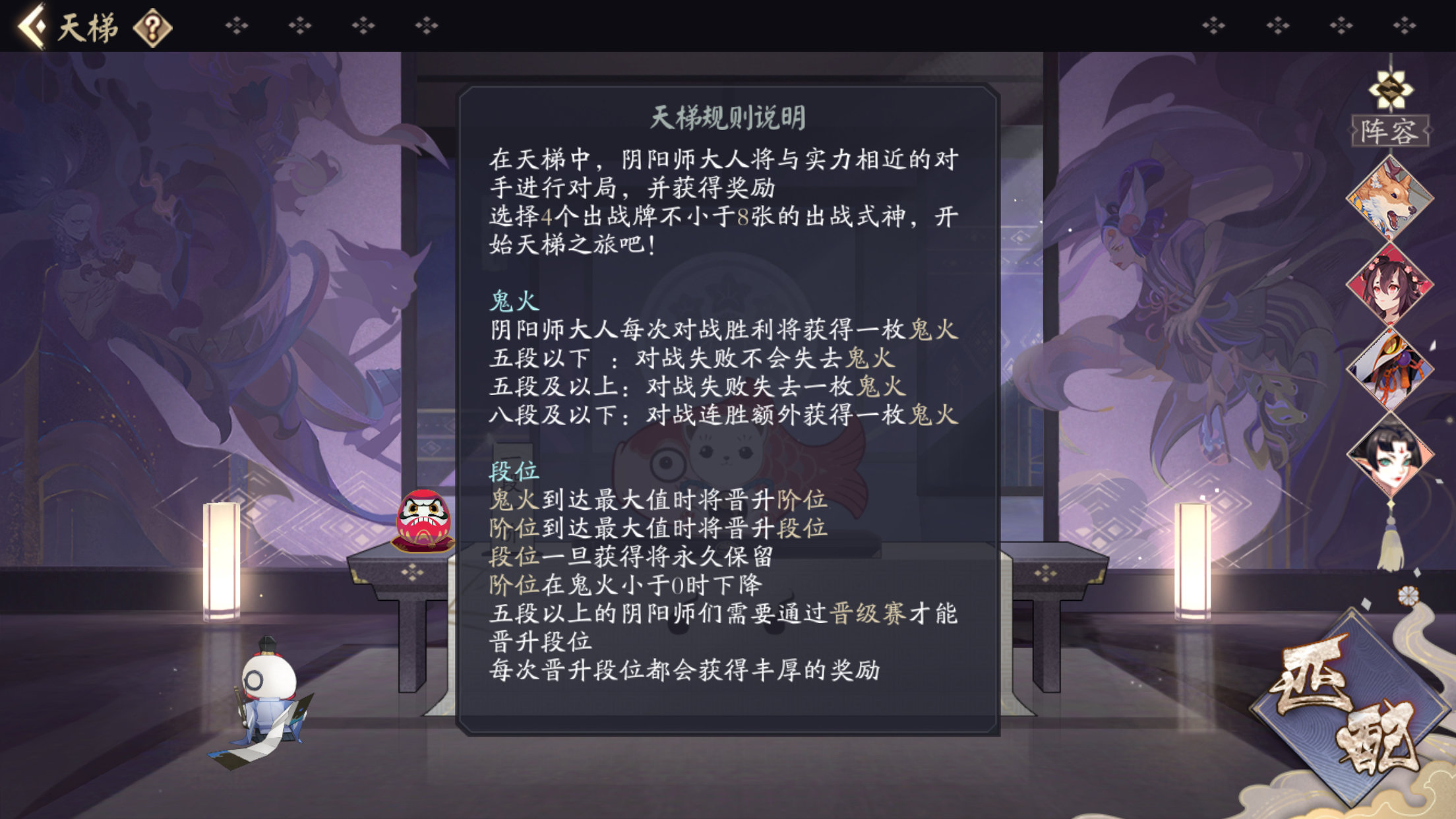 手牌—战斗牌的使用需求一定的式神等级。各位客人可以通过战斗界面右侧的分配升级按钮提升式神卡牌的等级。