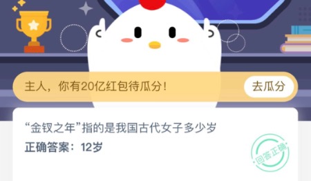 金钗之年指的是我国古代女子多少岁?2020年10月29日蚂蚁庄园今日答案最新是什么?相信不少朋友都还不知道今天支付宝小鸡庄园答案是什么,今天58免费资源网小编为大家分享支付宝小鸡蚂蚁庄园今日答案最新答题,快去答题吧!