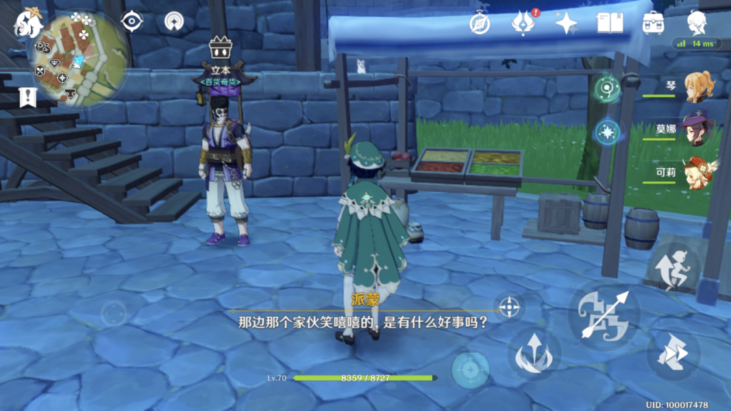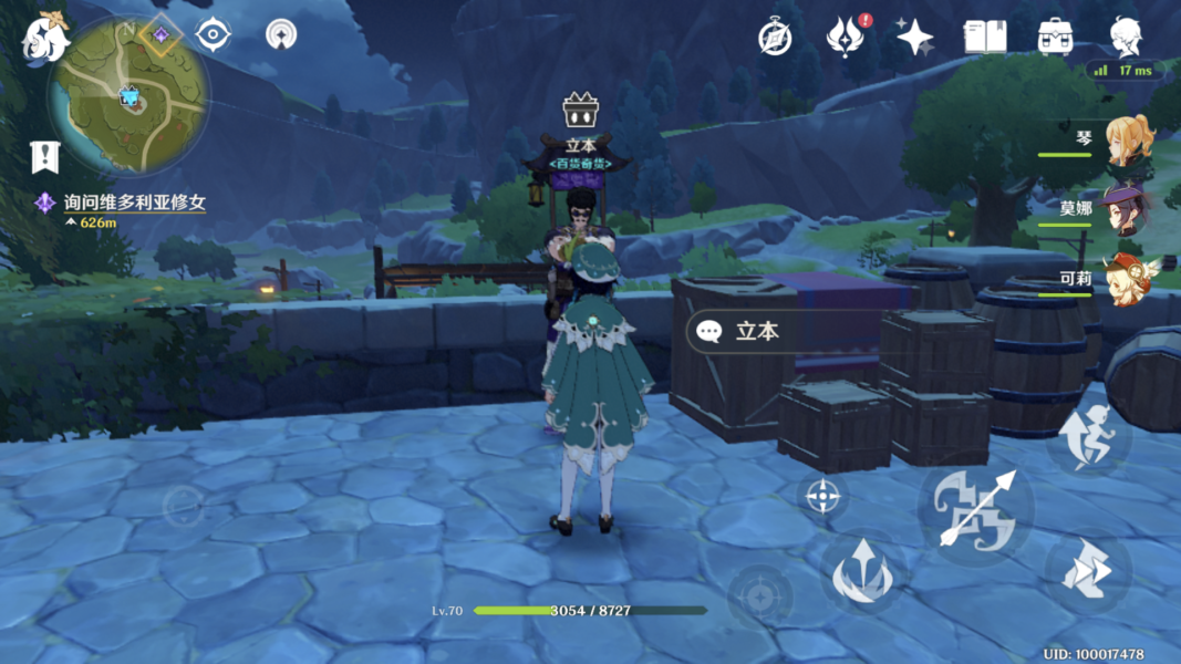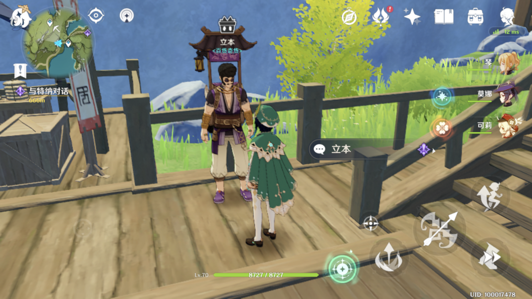 在蒙德城进城门后花店的正对面就是NPC所在的位置,也是我角色在的标点位