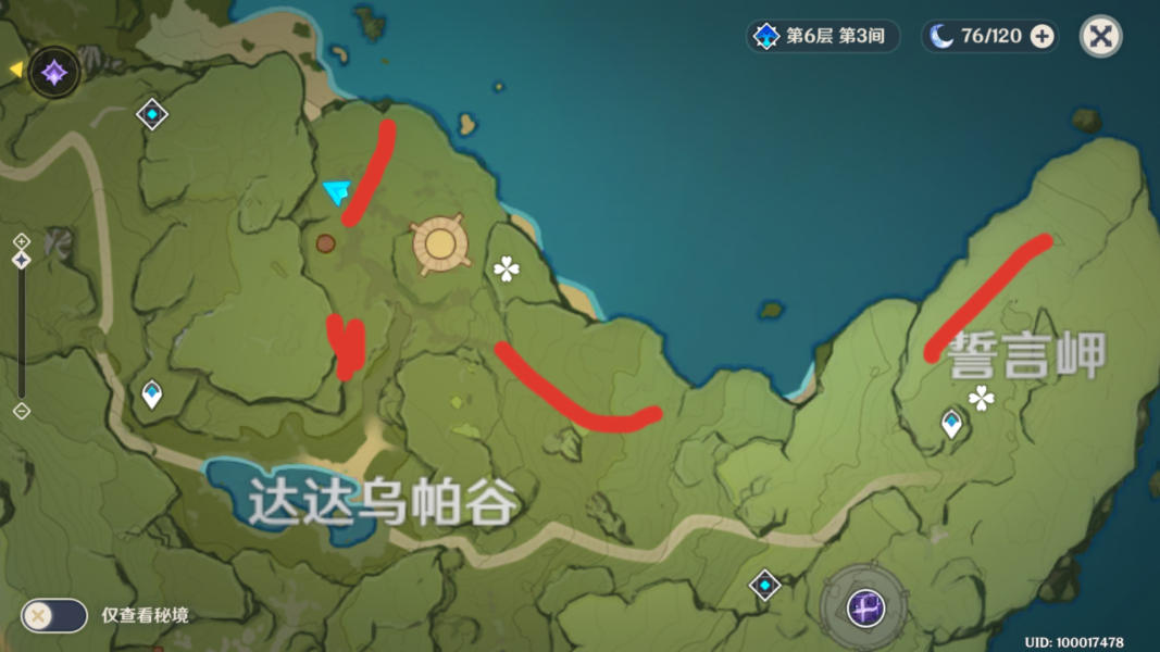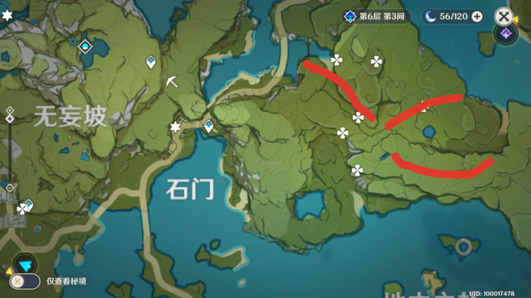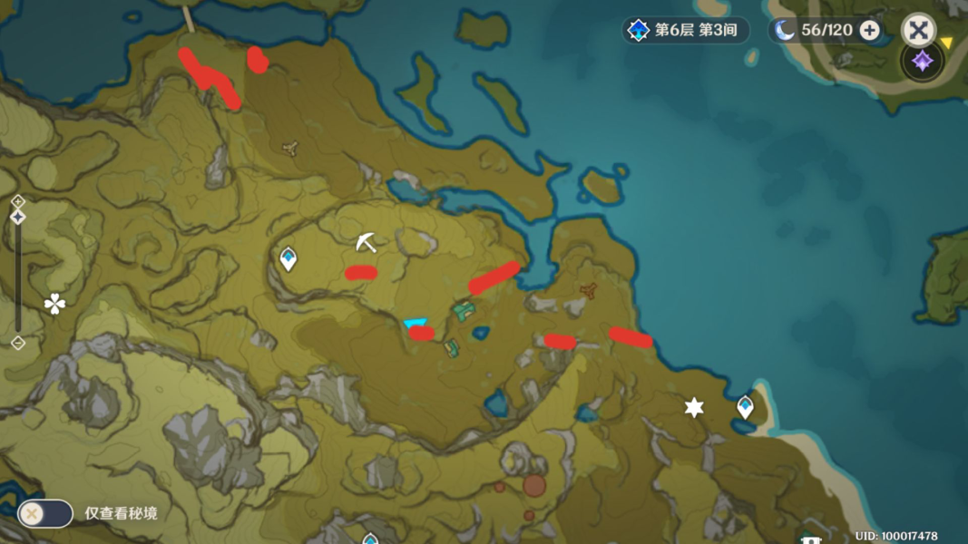 红线附近图上有【树莓】,需要采集可以来这边,石门东侧的需要爬高山