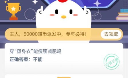 穿塑身衣能瘦腰减肥吗?2020年10月31日蚂蚁庄园今日答案最新是什么?相信不少朋友都还不知道今天支付宝小鸡庄园答案是什么,今天58免费资源网小编为大家分享支付宝小鸡蚂蚁庄园今日答案最新答题,快去答题吧!