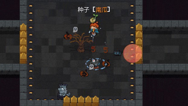 在万圣节关卡击杀南瓜人有机会掉落南瓜种子,种下以后每天浇水都可以开出来武器金币等等!