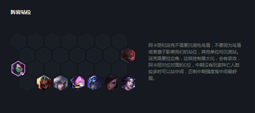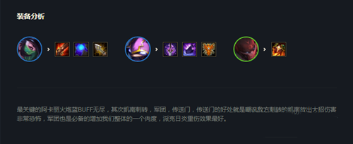 装备要求比较苛刻,成型之后锁血能力超强,吃鸡吃分不在话下,比较怕伏击,森林太肉克制一些,其他阵容均可吊打。