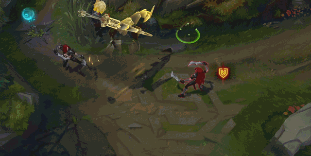 芮尔的魔枪攻击速度较为缓慢,作为补偿芮尔的攻击会窃取目标的10%护甲和10%魔法抗性,持续5秒(小兵只有20%效果),同时芮尔的具有熔化护甲的效果会额外造成8-16(随等级提升)(+1窃取护甲)(+1窃取魔法抗性)魔法伤害,攻击英雄可以刷新窃取的持续时间