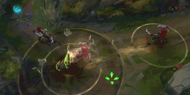 被动:芮尔获得5-15%(于1-18级变化)的加速效果,承受伤害时降低至1-3%,如果芮尔受到了定身效果,该加速效果会暂时失效。