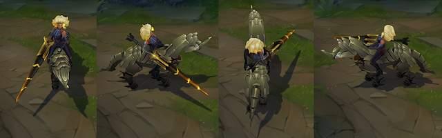 主动:芮尔向前冲刺,并将她的铠甲变为一匹坐骑,获得15%的加速效果(朝敌方英雄移动时提高到25/30/35/40/45%),持续3.5秒,持续期间,芮尔的下一次普攻会朝目标冲锋,额外造成25(+30%AP)魔法伤害并将敌人挑至自己身后,之后终止该加速效果