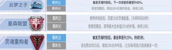 2-2-2-1羁绊肯定不用说,必定最大增加阵容属性,个人推荐:云梦之子、灵魂重构、星森联盟。
