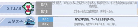 S.T.;AB本身羁绊的4属性能提升35%的伤害加上觉醒后的30秒内输出,以及主攻卡的强力属性可以当成目前的T1组合,唯一就是ST的收集难度有点小高,因为常规池里么有。