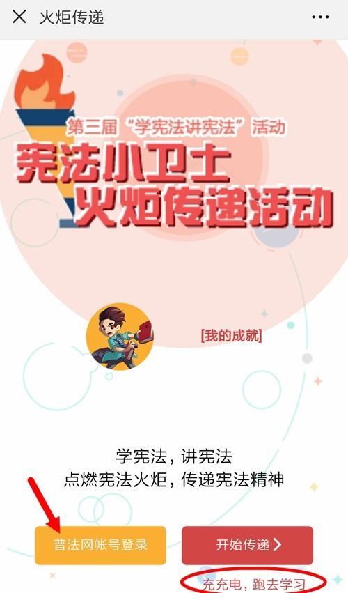 1.关注青少年普法微信公众号,宪法小卫士,点击页面上的登录选项进行登录。