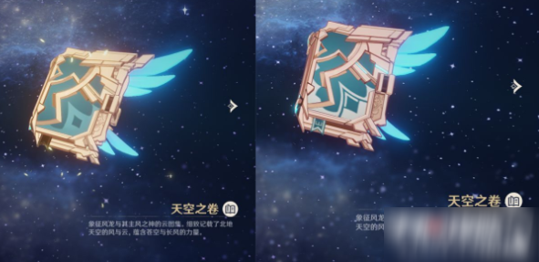 天空系列武器,突破后颜色稍微加深,没有那么闪亮,但是书上花纹更加复杂精美,原本暗淡的书签色调也更换成了天空系列特有的颜色且有了精美的花纹。