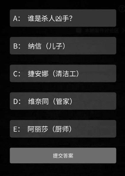凶手是厨师阿丽莎,从他的证据上看,他的笔记本是非常奇怪的,很有可能就是因为笔记本中母亲和死者曾经有矛盾,因而起了杀心。