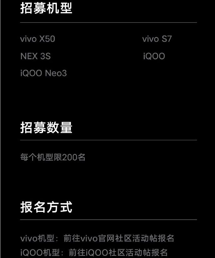 招募时间为 12 月 1 日 - 12 月 10 日,每个机型限 200 名,推送时间为 12 月 15 日,根据实际情况如有变化将会及时通知。