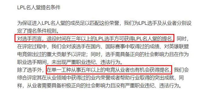 这次名人堂的遴选标准也是做得非常严苛,在选手方面必须要退役三年以上并且拥有过硬的实力以及荣誉,而其他工作岗位需要连续从事五年以上才有资格获得提名。单这些时间限制就已经劝退了很多的选手以及教练以及解说们。当然如果可以通过这些条件的选择,那么被选中的人也更符合众望所谓四个字。