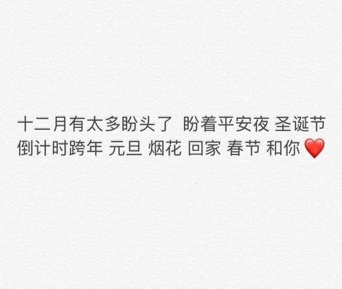 十二月太多盼头了,盼着平安夜、圣诞节、倒计时跨年、元旦、烟花、回家、春节和你。