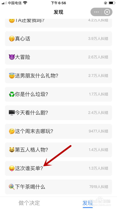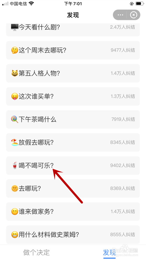 跳转新页面后,查找并点击【喝不喝可乐】。
