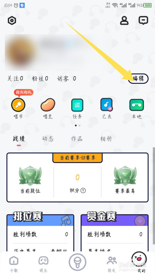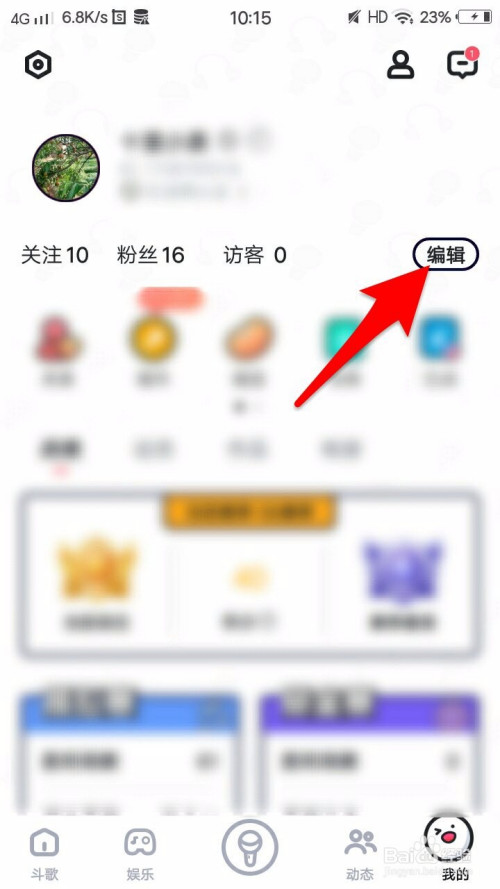 进入到“我的”界面后,找到“编辑”这两个字,并且用手指去点击这个选项;