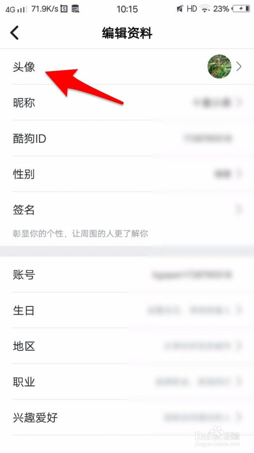 之后会进入到“编辑资料”界面,找到上方的“头像”,并用手点击这两个字;