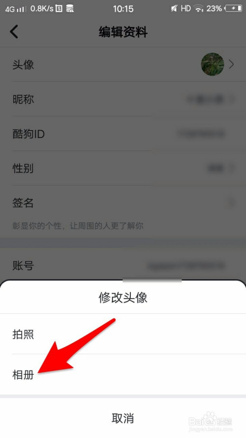 可以选择拍照,也可以从相册里面找,这里我点击的是“相册”,如箭头所示;