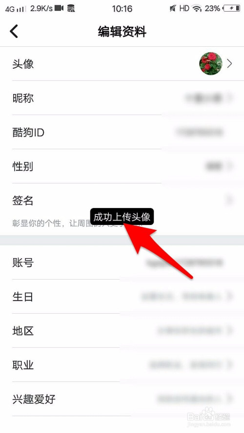 最后,头像上传成功,如图所示,在中间弹出了一个消息框“成功上传头像”。