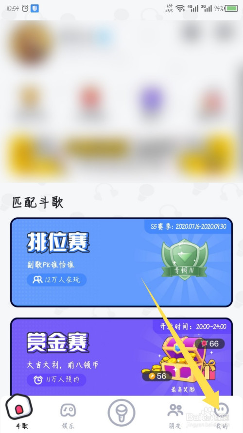 在手机上找到酷狗唱唱斗歌版,打开它,然后找到右下角的“我的”,点击它;