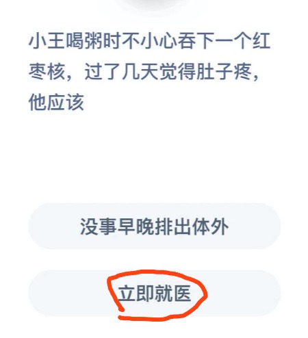 小王喝粥时不小心吞下一个红枣核,过了几天觉得肚子疼,他应该?今天支付宝小鸡庄园2020年12月4日答案是什么?相信不少朋友都还不知道今日支付宝小鸡庄园答案是什么,今天58免费资源网小编为大家分享支付宝小鸡庄园今日答题答案,快去答题吧!